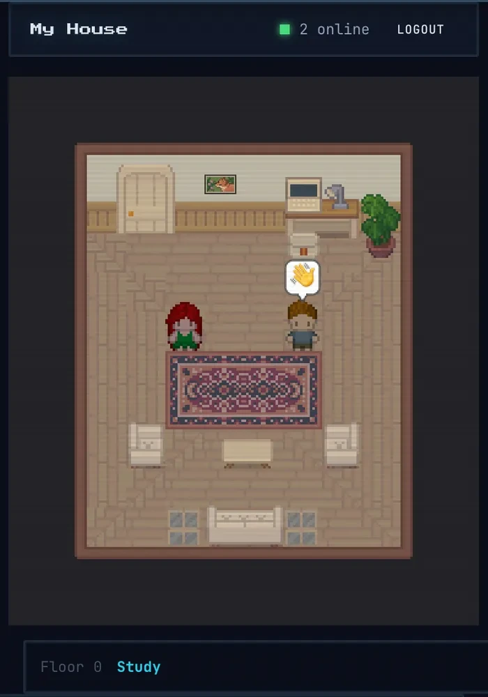 It was all coming together pretty quickly. By the end of the first day I'd gotten something that resembled a game, it even had pathfinding. I could make a little room and walk a little person around it. I even cobbled together a primitive relay server so multiple people could walk around the same room.